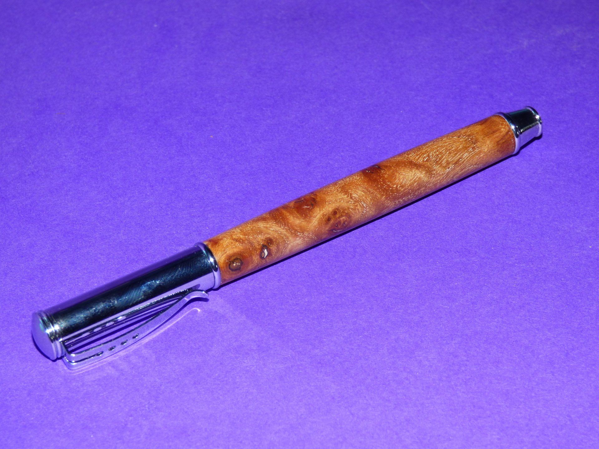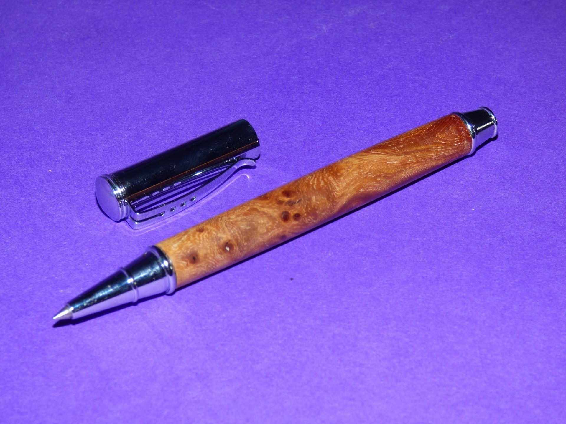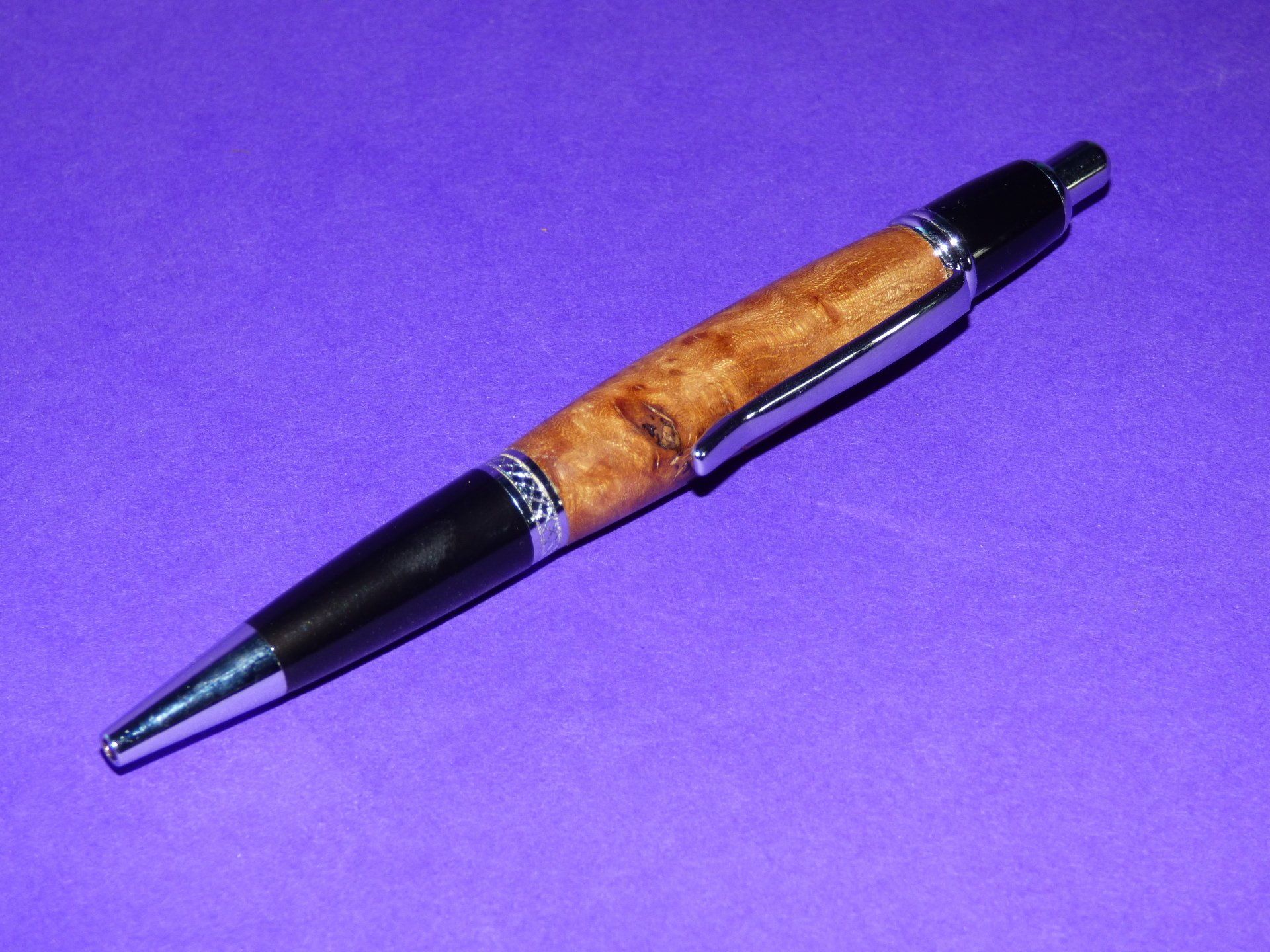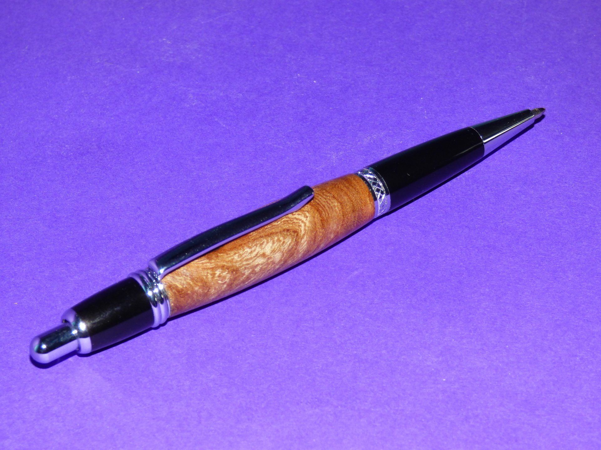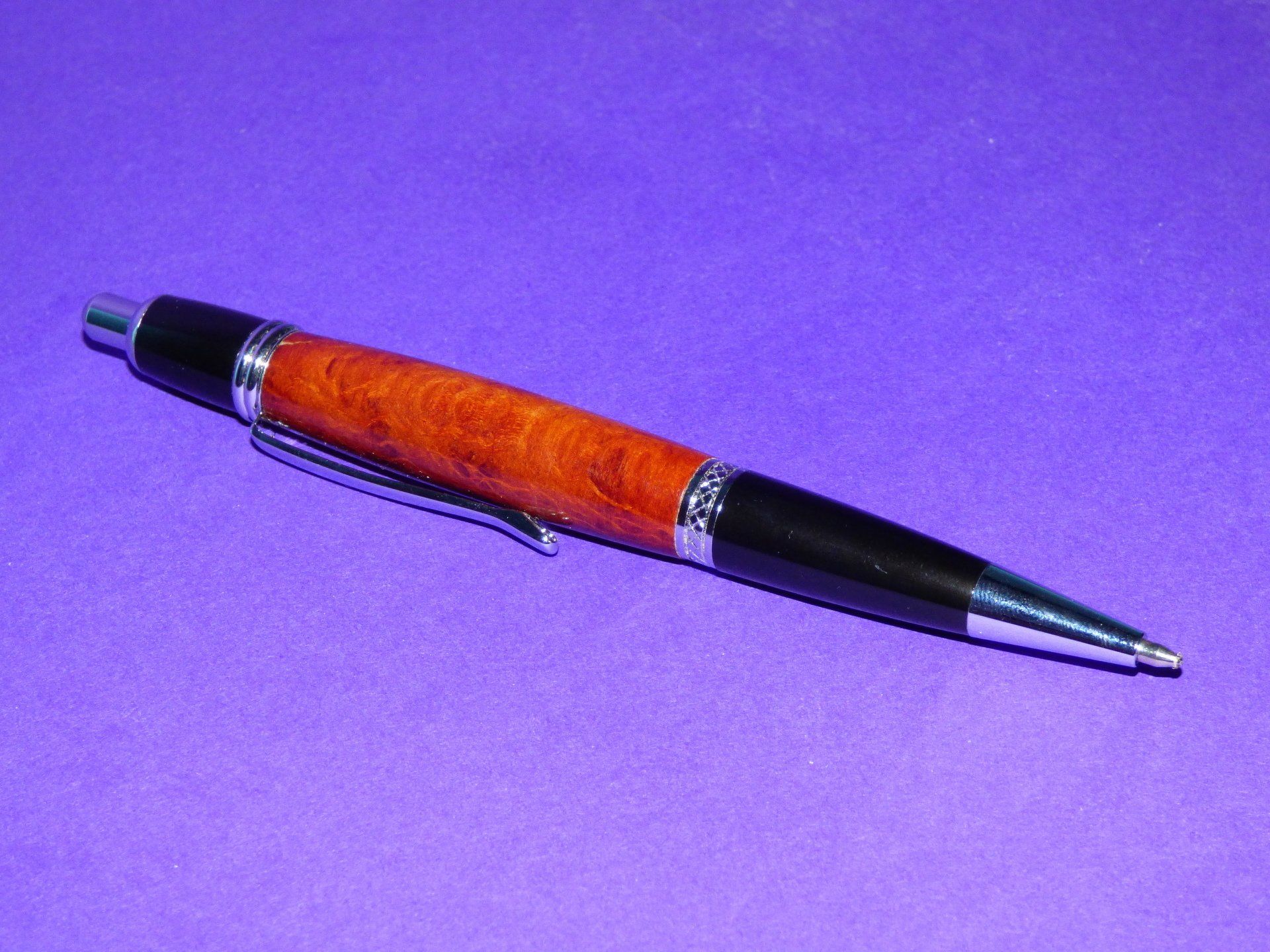 So many options, so many ideas. The pens below are only a few of the varied types of wood and acrylic resin options available. Brass, chrome, gold plated and rainbow finishes to the metal. Local woods from Oak, Chestnut, Cherry and Sycamore through all the exotic species from around the world. If you want something in particular, ask and I will see what I can do!